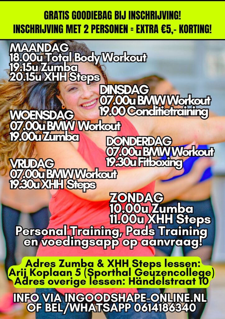 • Voor de Zumba Fitness & Xtreme Hip Hop Step lessen in Vlaardingen hanteren we een maximum van 30 personen per les.